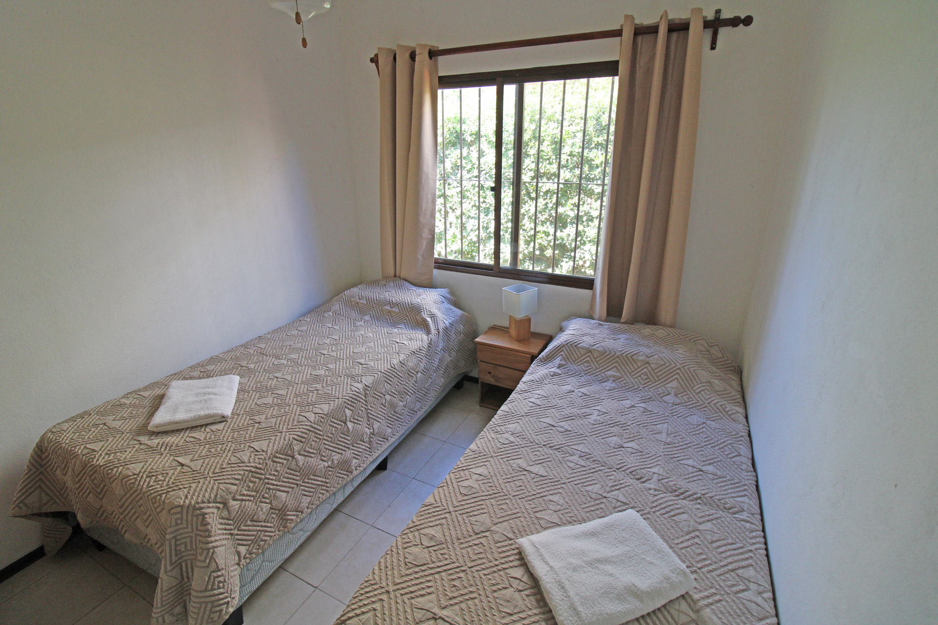 Camas: 1 cama de dos plazas en dormitorio matrimonial, 2 camas individuales en dormitorio twin y 1 cama marinera en el living-comedor.