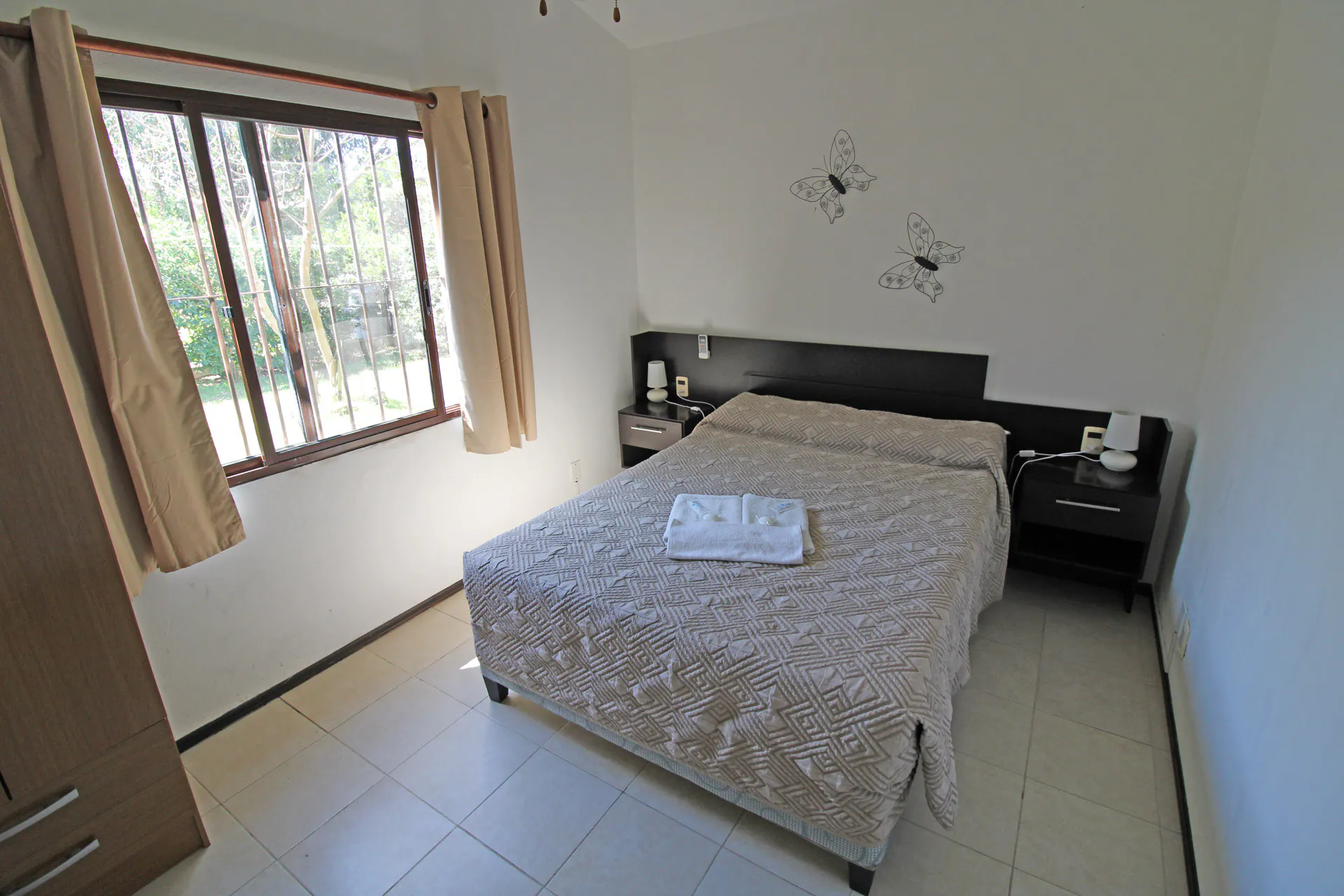 Camas: 1 cama de dos plazas en dormitorio matrimonial, 2 camas individuales en dormitorio twin y 1 cama marinera en el living-comedor.